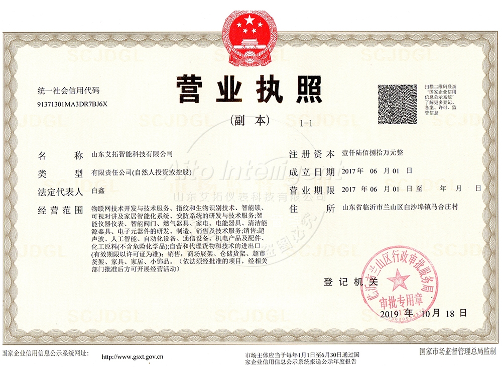 山東艾拓智能科技有限公司是以設(shè)計(jì)、研發(fā)、生產(chǎn)、銷售、服務(wù)為一體的綜合性新型企業(yè),我們一直致力于生產(chǎn)智能水表、智能電表、智能燃?xì)獗?、超聲波熱量表等四大系?0余款產(chǎn)品,公司注冊資金1680萬元,占地6000余平。
